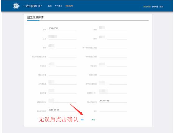 3.确认流程:登录学校官网→信息门户→登录个人界面→我的应用→添加“+”应用→超工作量确认→勾选打钩,点击查看→确认