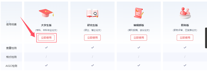 2.页面中“个人论文查重”和“个人AIGC检测”按钮,为付费检测链接,如图: