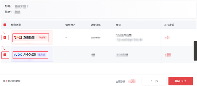 特别提醒,请根据需要自主勾选“查重检测”服务或“AIGC检测”服务。