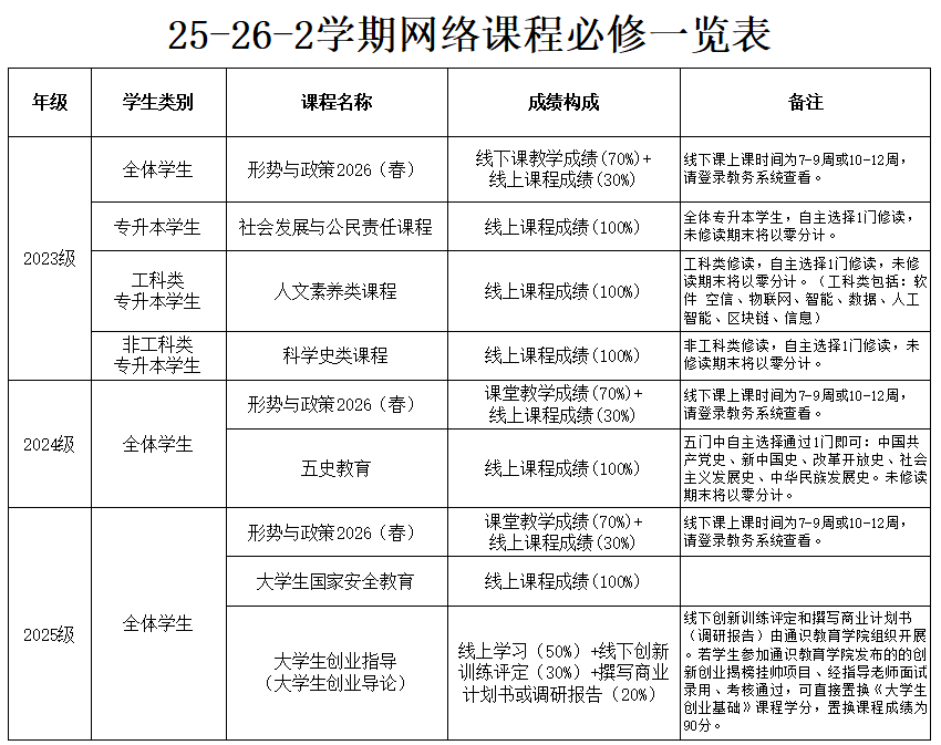 现将我校2025-2026学年第二学期网络在线自主学习相关事项通知如下: