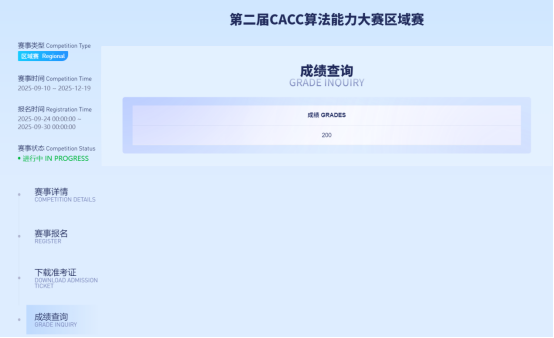 成绩发布之后,选手可以在“成绩查询”中看到自己的成绩。